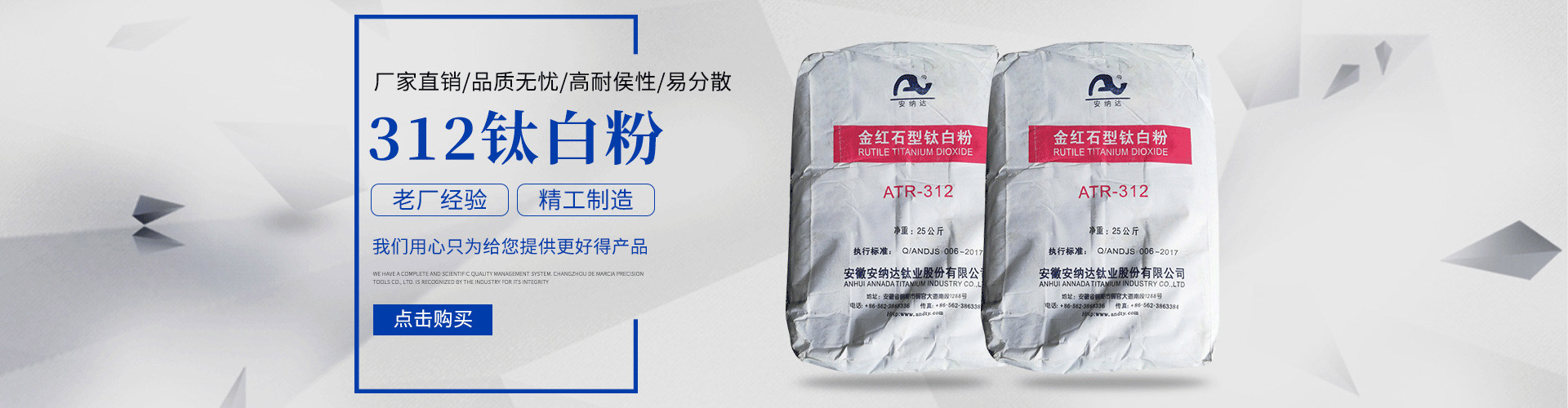常州安鈦化工有限公司經(jīng)銷批發(fā)的鈦白粉、沉淀硫酸鋇、立德粉、滑石粉、高嶺土、炭黑、云母粉、彩色顏料、氫氧化鈣、硅微粉、氧化鐵紅、氧化鐵黑、金紅石型鈦白粉、銳鈦型鈦白粉、進(jìn)口鈦白粉暢銷消費者市場,在消費者當(dāng)中享有較高的地位,公司與多家零售商和代理商建立了長期穩(wěn)定的合作關(guān)系。常州安鈦化工有限公司經(jīng)銷的鈦白粉、沉淀硫酸鋇、立德粉、滑石粉、高嶺土、炭黑、云母粉、彩色顏料、氫氧化鈣、硅微粉、氧化鐵紅、氧化鐵黑、金紅石型鈦白粉、銳鈦型鈦白粉、進(jìn)口鈦白粉品種齊全、價格合理。常州安鈦化工有限公司實力雄厚,重信用、守合同、保證產(chǎn)品質(zhì)量,以多品種經(jīng)營特色和薄利多銷的原則,贏得了廣大客戶的信任。